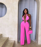 The Sweet & Savage Jumpsuit is the ultimate blend of playful femininity and fierce confidence. Designed in a vibrant hot pink hue, this daring halter-style piece features plunging cutouts with bold ring accents that sculpt and flatter your curves. The wide-leg silhouette brings balance and drama, flowing effortlessly with every step. Perfect for nights out, parties, or whenever you want to own the room, this jumpsuit proves you can be both sweet and unapologetically savage.