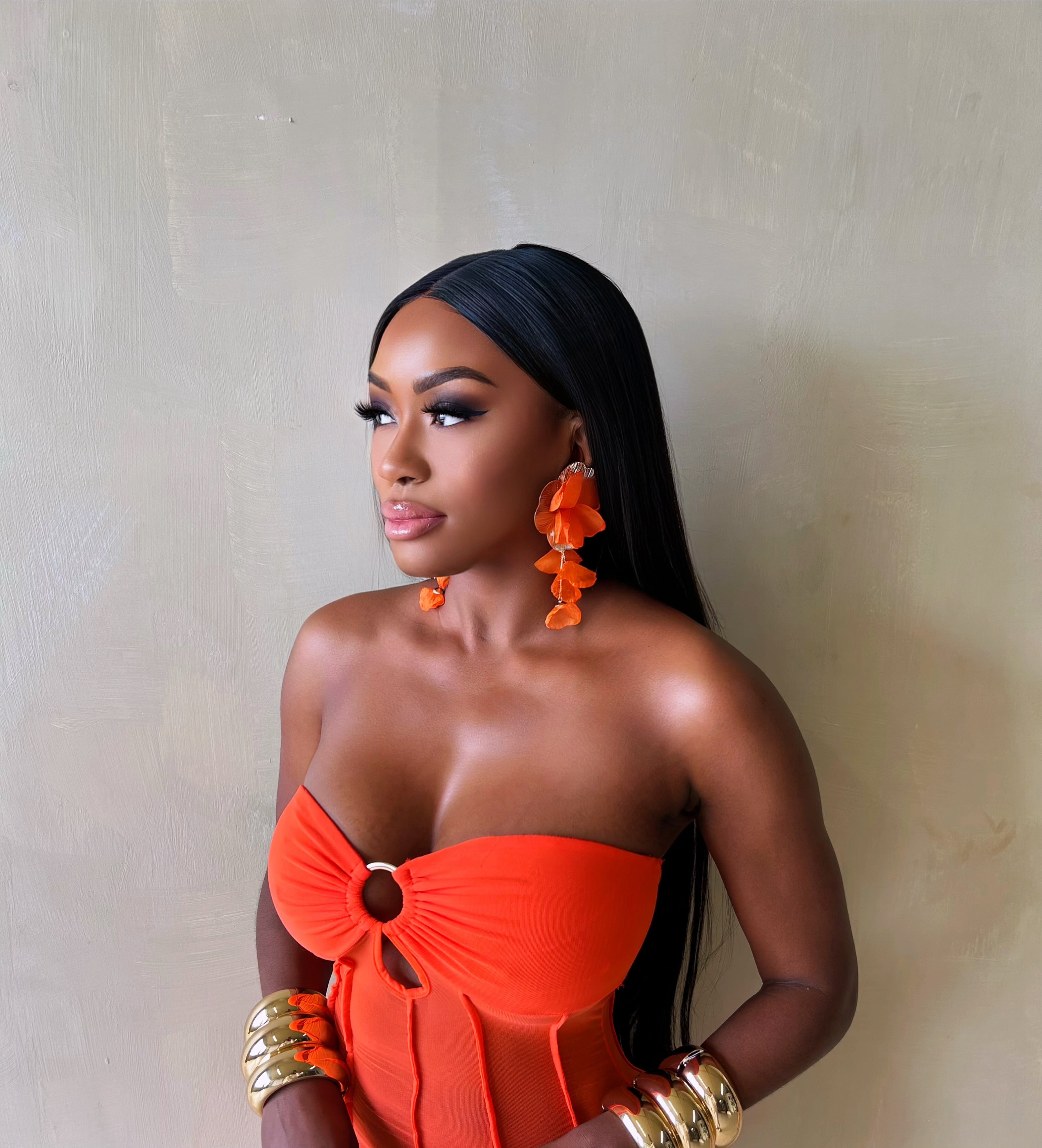 Hibiscus Orange Flower Earring