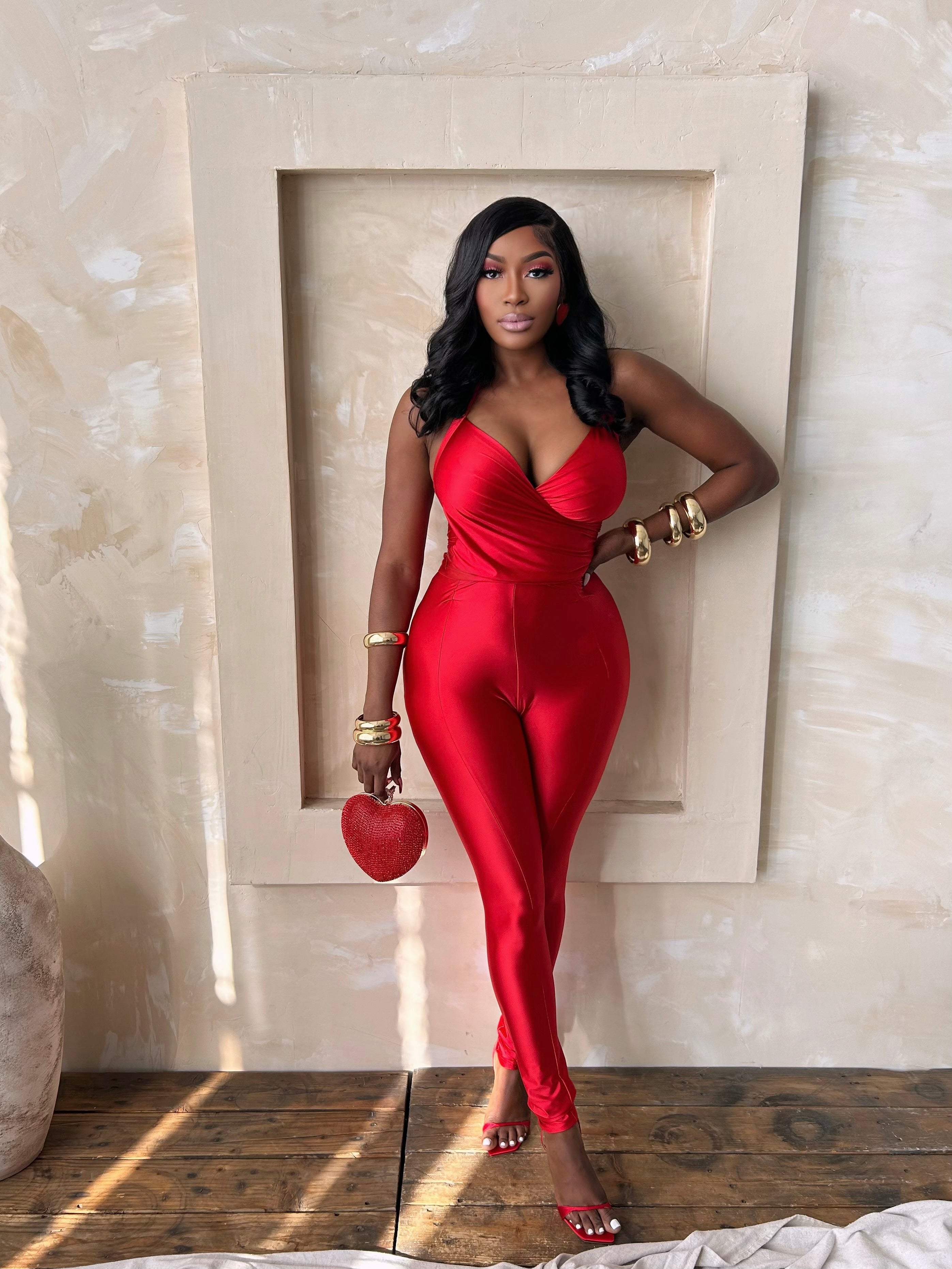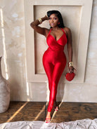 Sweet Obsession Pants Set is designed to captivate with effortless confidence and irresistible charm. Crafted in a bold crimson hue, this striking two-piece features a halter-style wrap top with a flattering plunge neckline that highlights the bust while cinching the waist. The matching high-waisted pants sculpt the body with a smooth, curve-hugging fit that elongates the legs for a sleek finish. Sexy yet refined, this set is perfect for Valentine’s dates, special nights out, and moments when you want all eyes on you. ❤️